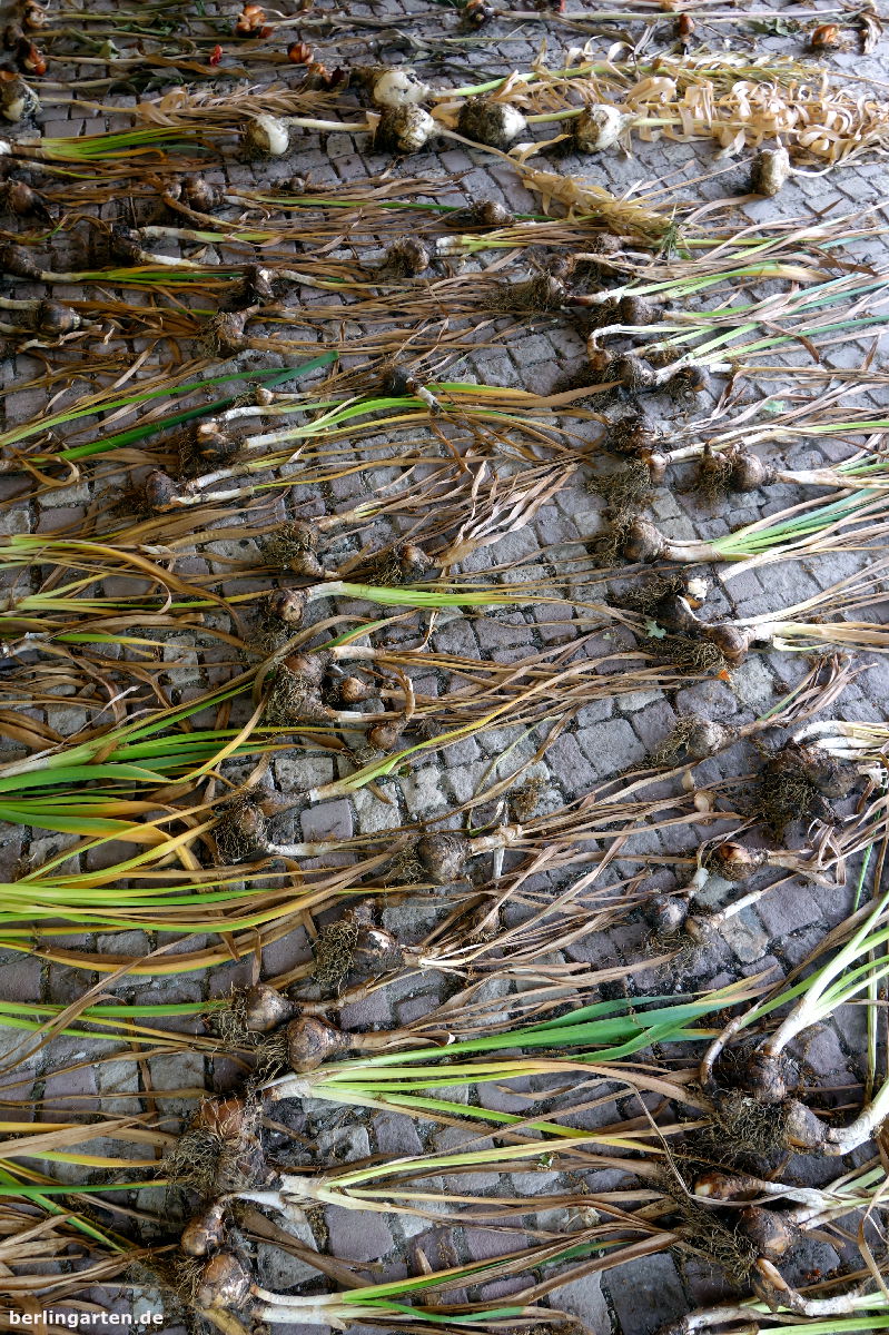 - Narzissenzwiebeln, die aus der Erde geholt wurden und jetzt abtrocknen