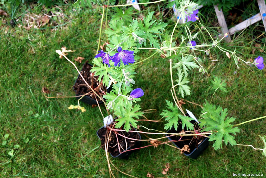 Diese hier habe ich auf dem Berliner Staudenmarkt gekauft, da sieht man mal, wie lange es gedauert hat, bis ich bei den kurzen Tagen die Möglichkeit hatte, die Pflanzen auch wirklich einzusetzen. Die Sonnenbraut ist von Foerster (http://www.foerster-stauden.de), die Geranium-Sorten von Staudengärtnerei Eskuche (http://stauden-eskuche.de/), die Schönaster? Das weiß ich leider nicht mehr.