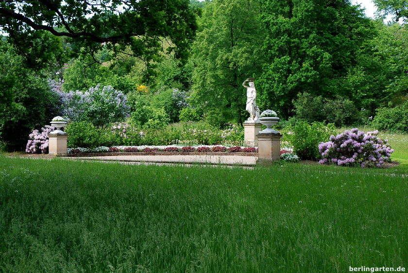 Die Gartenanlage besticht durch viele verschiedene Gartenbereiche wie den fromal-barocken Beeten direkt um die Palais sowie freies Gelände mit prachtvollem altem Baumbestand. Der Koniferenhain mit seinen über 200 bis zu 30 m hohen Riesen beeindruckt sehr.