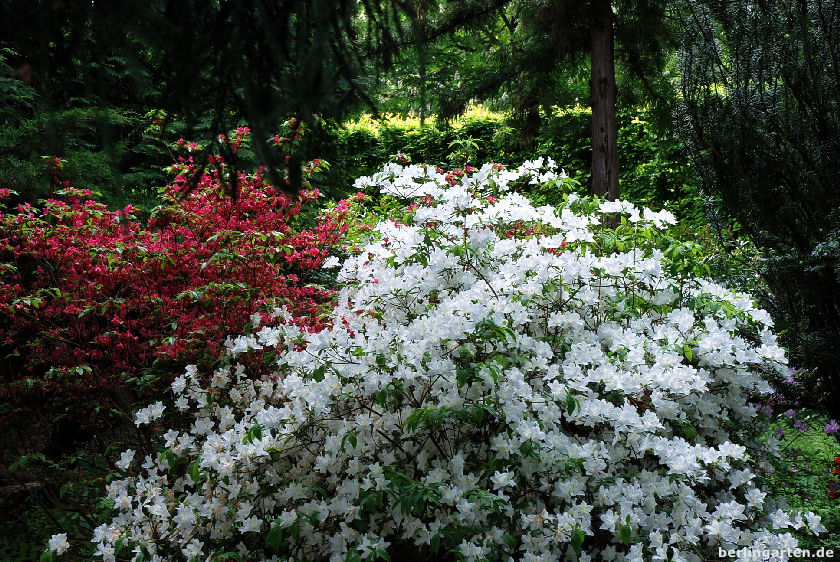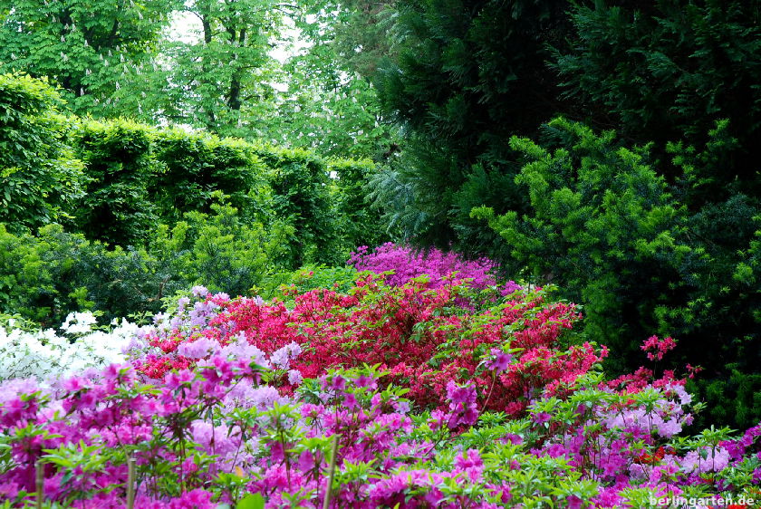 - In den Heckenquartieren wachsen Rhododendren aller Couleur.