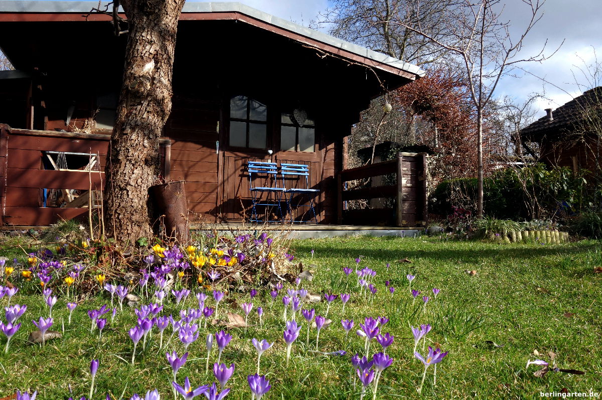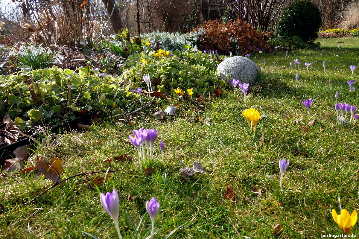 - Die frühen Krokusse wandern durch die Beete. Ein Bild aus wärmeren Tagen