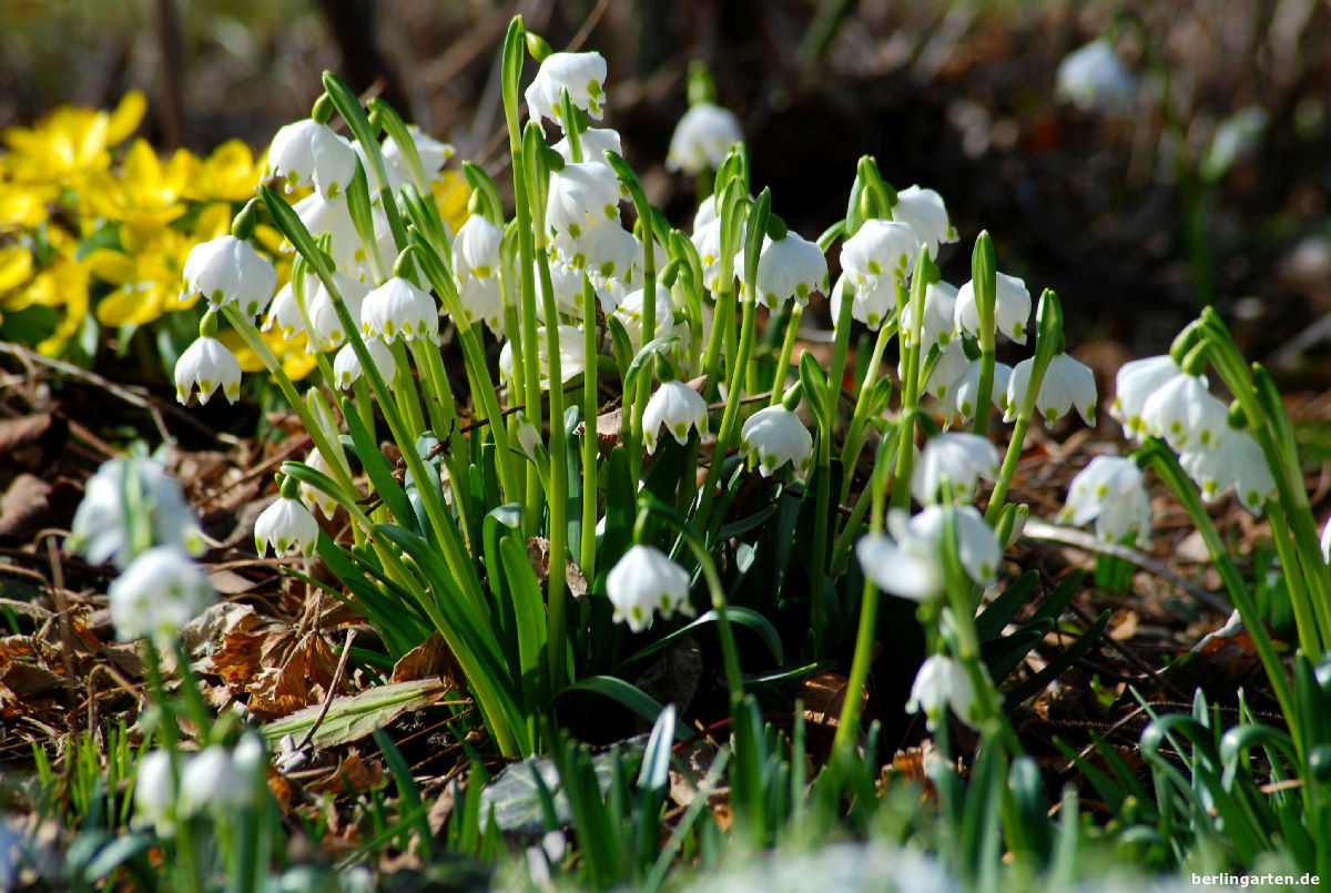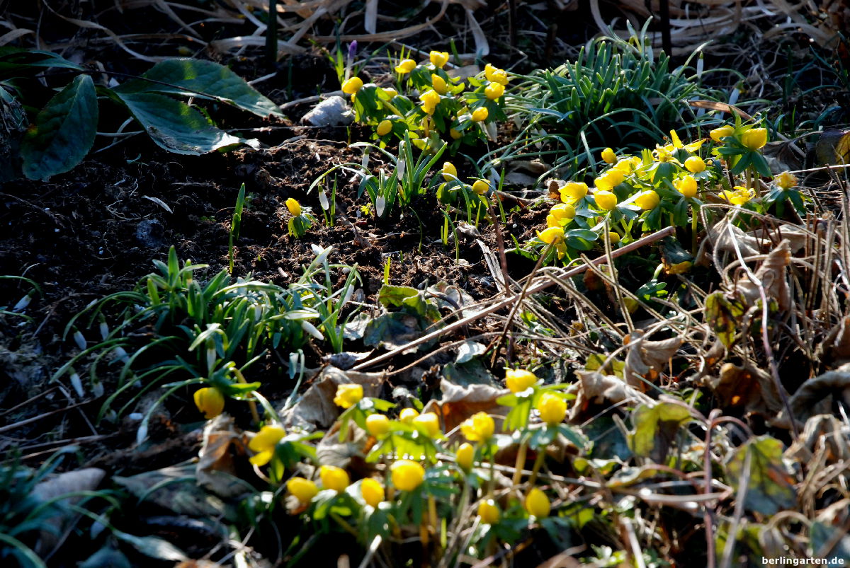 Echte Optimisten sind hingegen die Märzenbecher. Sie bimmeln selbst bei der größten Kälte, als könnte jeden Moment eine Biene um die Ecke kommen. Die Krokusse stehen derweil zwar noch aufrecht, bei ihnen ist aber wegen Kälte geschlossen. Unter den Winterlingen gibt es einige, die anscheinend zu den Märzenbechern schielen und ihre Blüten öffnen, andere halten Winterschlaf in Kugelform. Kombiniere: Bei ihnen scheint nicht die Temperatur, sondern die Sonne der auslösende Faktor für das Öffnen der Blüten zu sein.