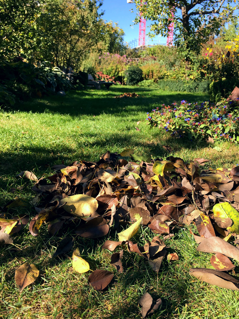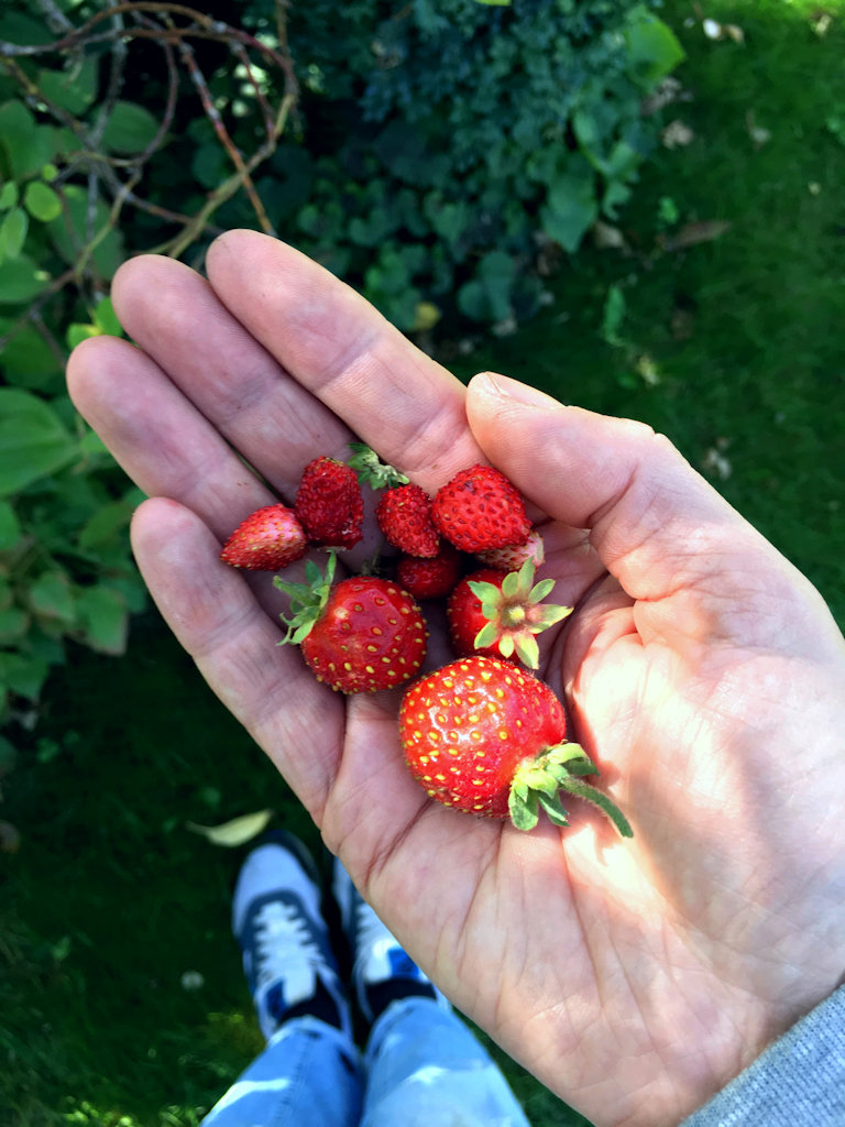Wir rechen jedenfalls schon seit Mitte des Monats das fallende Laub vom Rasen und verteilen es in den Beeten, wir setzen die Kompoststellen um und verteilen den Kompost großflächig im ganzen Garten. Die ausgelaugten Zucchinipflanzen habe ich zerschnibbelt und als Mulch direkt in meinem Dynamischen Agroforst liegen lassen. Im Beet stehen noch Tomaten, Kohl, Möhren, Kräuter und Chilis. Feldsalat ist ausgesät. Die dauertragenden Erdbeeren im Topf liefern täglich eine Hand voll Sommerglück.