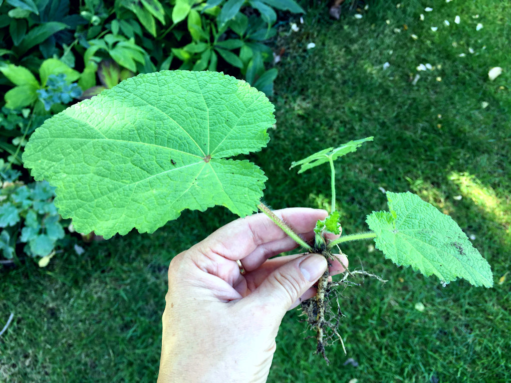 Auf den Knien suche ich auch nach Sämlingen. Stockrosen, Silberblatt, Spornblume, Fingerhut, Kronen-Lichtnelke oder Vergissmeinnicht: Sie waren in diesem Jahr zwar nicht so vermehrungsfreudig wie sonst, aber hier und da findet sich doch ein Pflänzchen, das nicht ahnen konnte, wo ich es im nächsten Jahr besonders dekorativ finden werde…