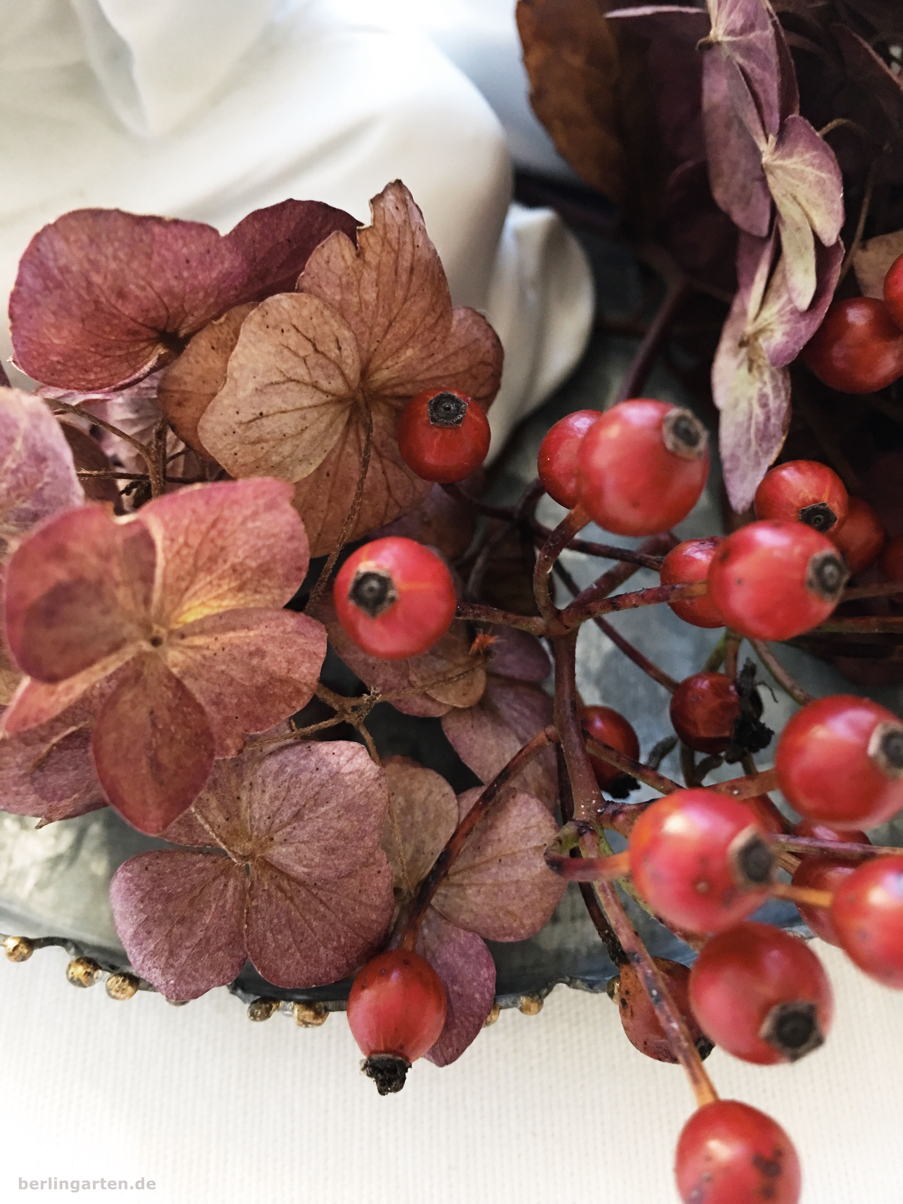 Was jetzt noch schön ist: Hortensien und Hagebutten
