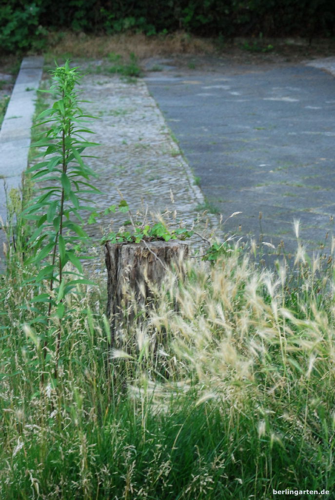 Typisch Berlin, könnte man sagen. Das innerstädtische „wilde Berlin“ kommt hauptsächlich noch auf den Mittelstreifen der großen Straßen vor. Oder auf Baumscheiben – die allerdings oft ihren Namen nicht mehr verdienen, da eingegangene Bäume nicht nachgesetzt werden. Die Senatsverwaltung für Stadtentwicklung und Umweltschutz bettelt mit durch Steuergelder finanzierten Kampagnen öffentlich um Privatspenden für Baumpflanzungen. Und lässt an anderer Stelle die Rodung tausender Bäume in Gartenanlagen zu. Nicht heile Welt: verkehrte Welt.