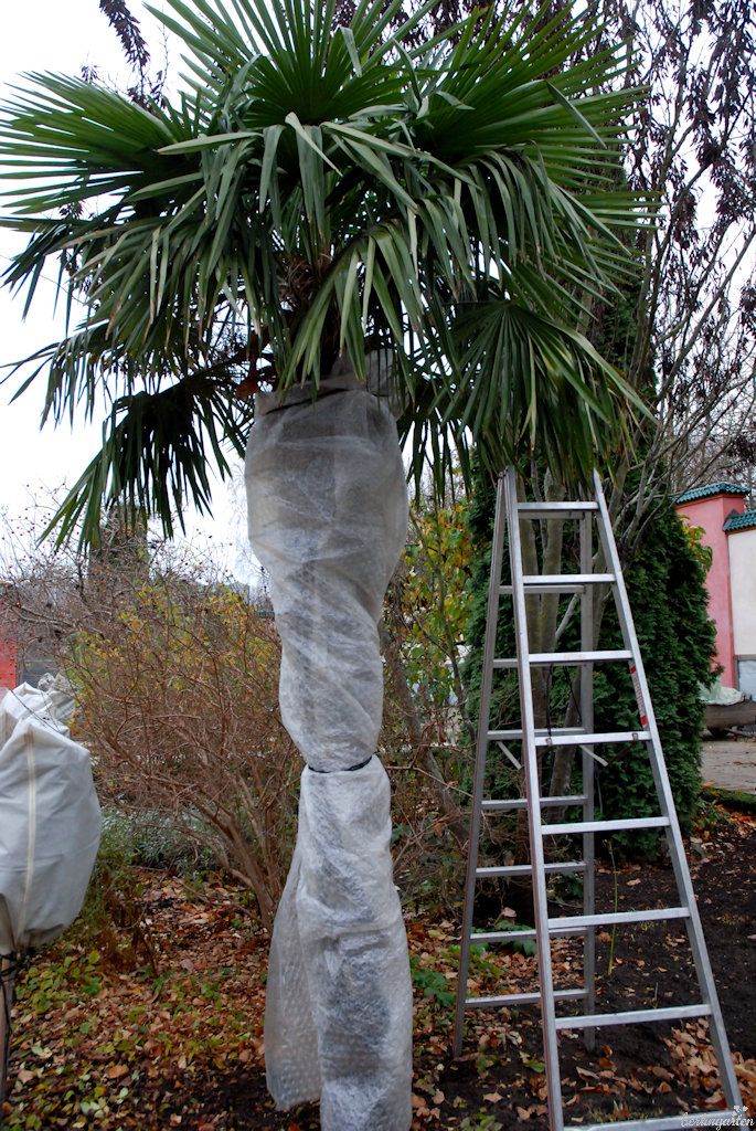 - Ein Winterschutz für die Palmwedel ist nötig