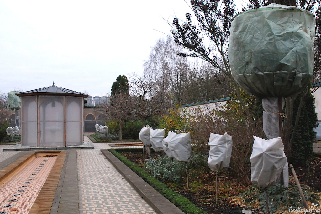 Im Winter ist der Orientalische Garten für Besucher geschlossen, da auch die Wandmosaiken geschützt und die wärmeliebenden Kübelpflanzen eingeräumt sind. Zum Start in die Saison am 1. April werden die Palmen wieder ausgepackt. „Man soll die Hanfpalmen auch nicht zu sehr verwöhnen. Mit etwas Abhärtung sind sie weniger empfindlich, als man gemeinhin denkt“, erklärt der Experte.