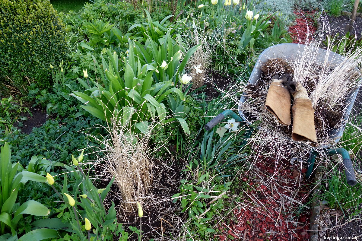ein Genuss, den Pflanzen so eine Frischzellenkur zu verpassen. Das Schöne daran ist, dass Pflanzen oder Gras sofort jung und frisch aussehen, kaum sind sie geteilt oder von den Altlasten befreit. Habe heuer auch schon kräftig für Verjüngung gesorgt, nur der Phlox fehlt mir noch. Beim Chinaschilf verfolge ich eher eine gegenteilige Strategie, der ist mir fast ein wenig zu vital. Selbst wenn ihm ein bisschen die Luft ausgehen sollte, bleibt noch immer reichlich davon übrig. Eventuell sogar zuviel…