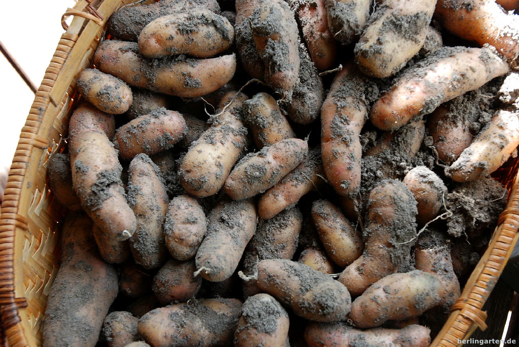 - Aus den Gemüsebeeten holen wir jetzt die Kartoffeln raus.