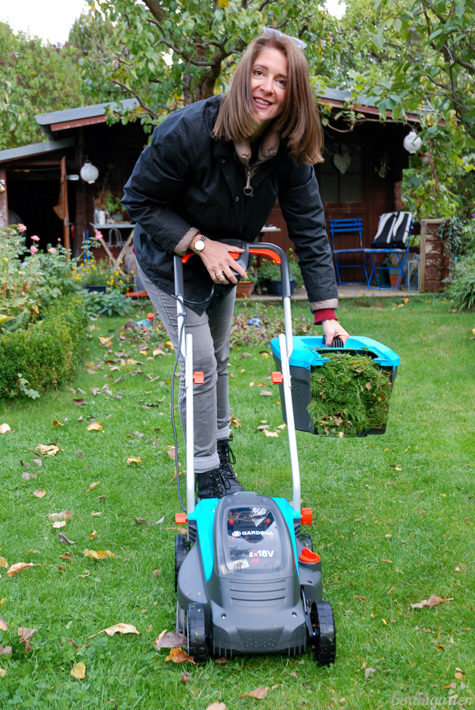 Für mich ist das Mähen keine Last, sondern eine durchaus angenehme Tätigkeit. Das hat vor allem damit zu tun, dass ich a) ein überschaubares Areal habe, das gepflegt werden will, und mir b) die Sache mit meinem City-Flitzer PowerMax von GARDENA auch sehr leicht von der Hand bzw. von den Messern geht. Nachdem ich bis dato mit einem Mäher mit Kabel unterwegs war, genieße ich jetzt die neue Freiheit und ziehe durch die Akku-Technologie flexibel meine Bahnen. Der Mäher ist übrigens geradezu winzig und leicht und passt mit zusammengelegtem Gestänge super in meinen kleinen und immer viel zu vollen Geräteschuppen. Die 18-Volt-Akkus sind kompatibel mit anderen GARDENA-Geräten – ich kann mir also vorstellen, dass mein Schuppen bald noch ein paar interessante Helfer mehr beherbergen muss.