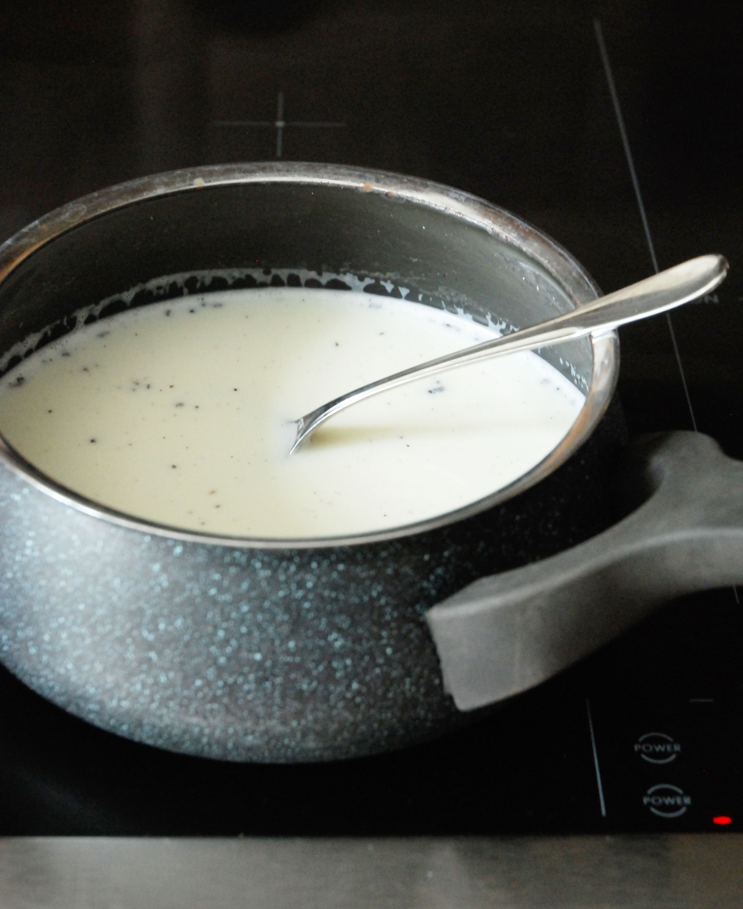 Die Milch mit der Vanille zum Kochen bringen (die Schote ruhig mit hineingeben), rasch vom Herd nehmen und mindestens 30 Minuten ziehen lassen. Bleib beim Erhitzen dabei, sonst kann’s überkochen.