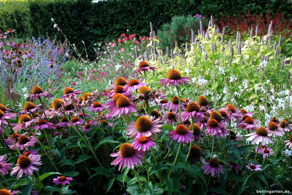 - Kühle Töne wunderschön harmonisch: Echinacea, Gaura, Agastache.