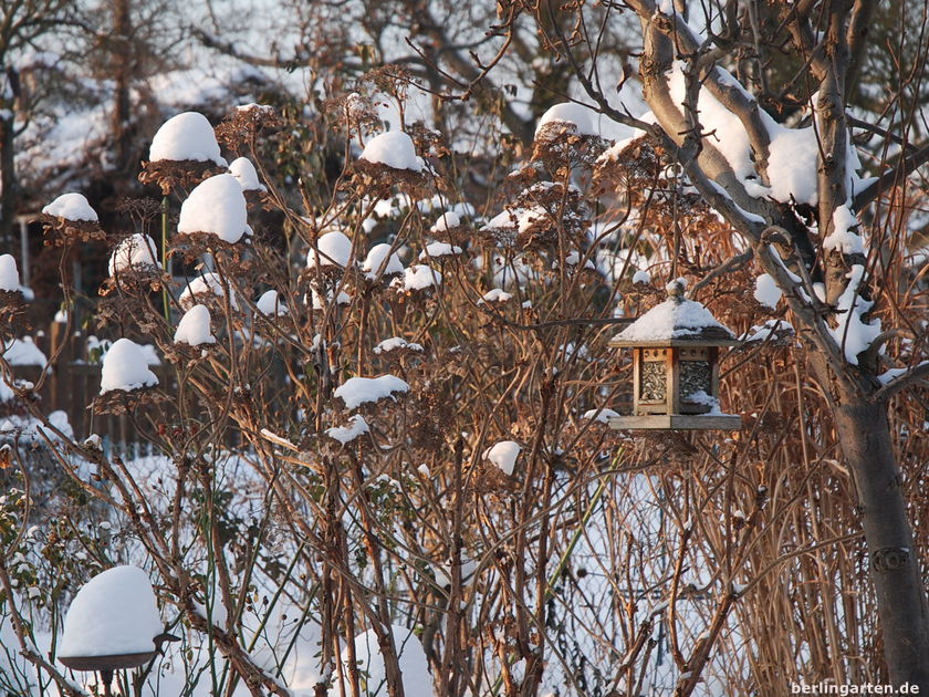 Meine Strategie ist: lieber den Garten so vogelfreundlich bepflanzen, dass die Piepmätze dort genügend Futter finden. Ich sorge für viele Leckereien wie Hagebutten und locke Insekten durch nektarreiche Blüten, Totholzhaufen und Nistmöglichkeiten an. Laub darf – Ausnahme Rasen – liegen bleiben, ich schneide auch keine Stauden herunter. Natürlich gehören auch Schutz bietende Stäucher und Nistkästen dazu, die jetzt im Winter gern als warme Stube genutzt werden.