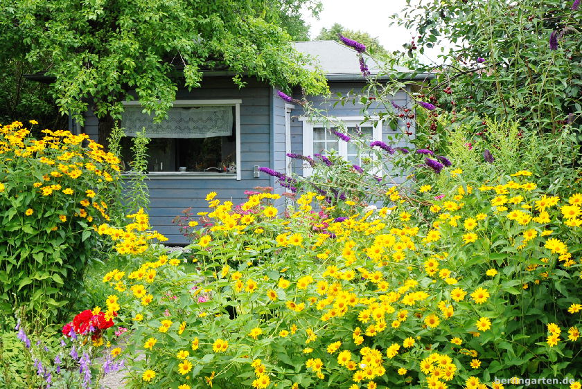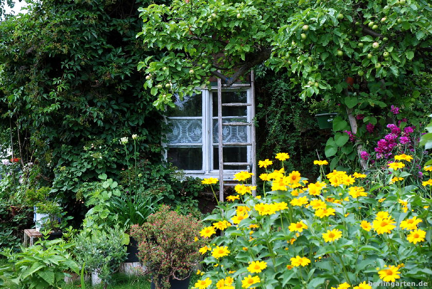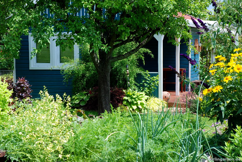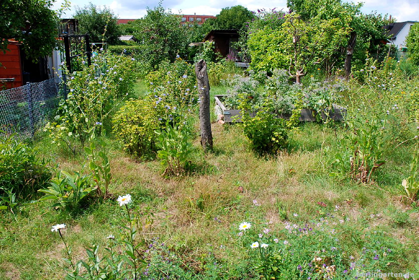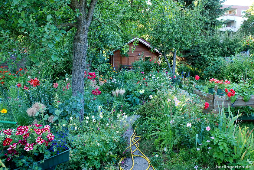 Eure Kolonie ist wirklich ein besonderes Fleckchen mittenmang des Berliner Häusermeers, unweit des Kudamms. Und jedes Mal, wenn ich auf Besuch bin, freue ich mich einen Blick in all die unterschiedlich gestalteten Gärten werfen zu können. Besonders gefällt mir, dass in den Koloniegärten wirklich noch Gemüse, Stauden, Sommerblumen, alter Obstbaumbestand so eine gelungene Mischung bilden. Du hast das auch auf deinen Fotos wunderschön wiedergegeben. Auch den Garten, in den ich hin und wieder eingeladen werde, konnte ich entdecken.
