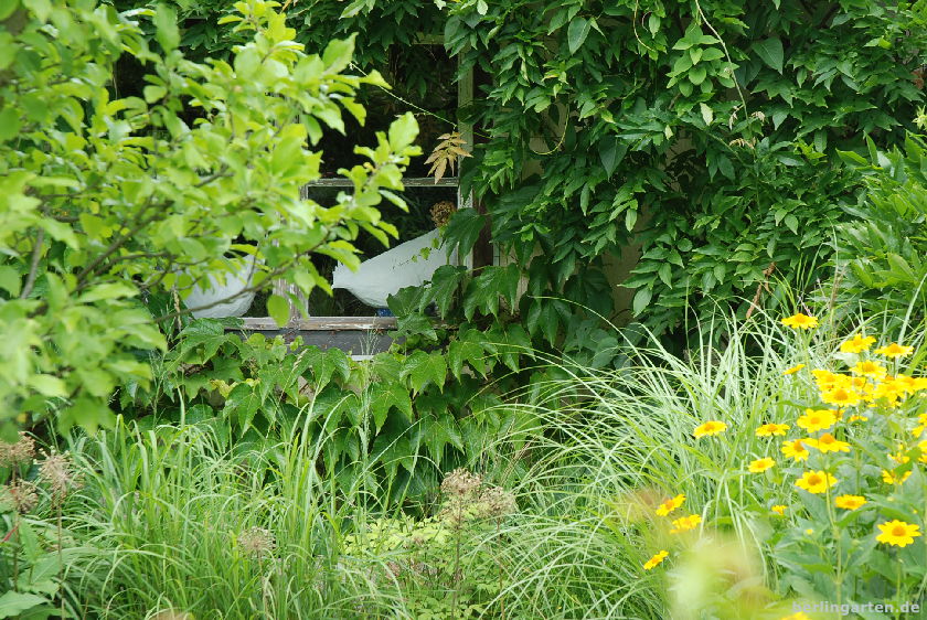 - Blick in den berlingarten mit Laube