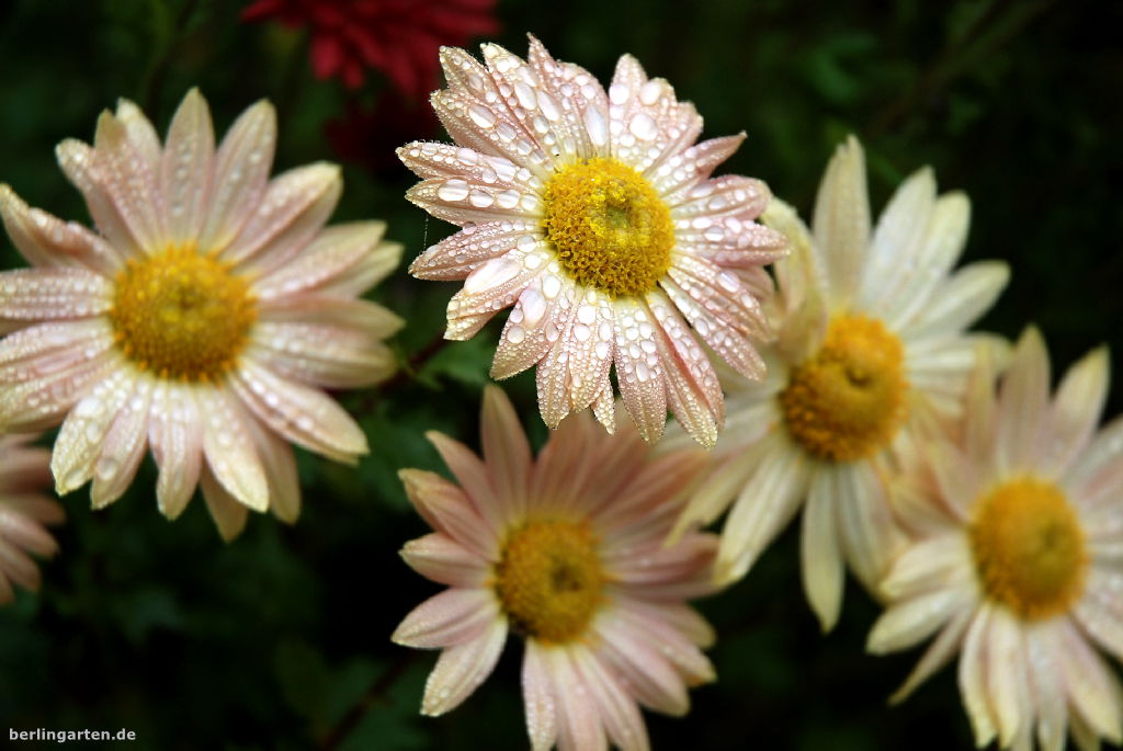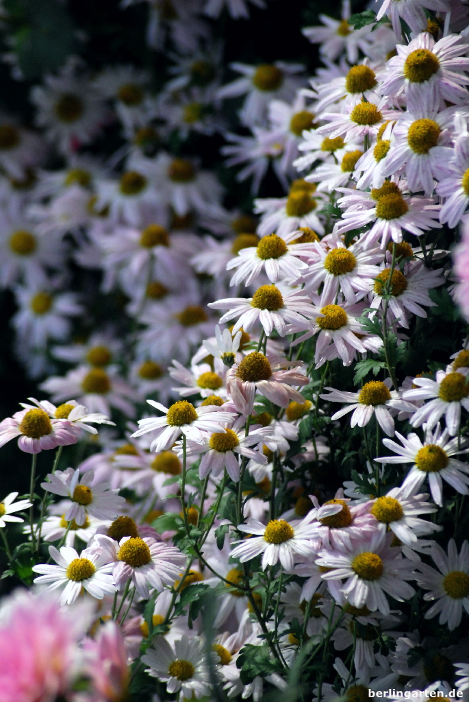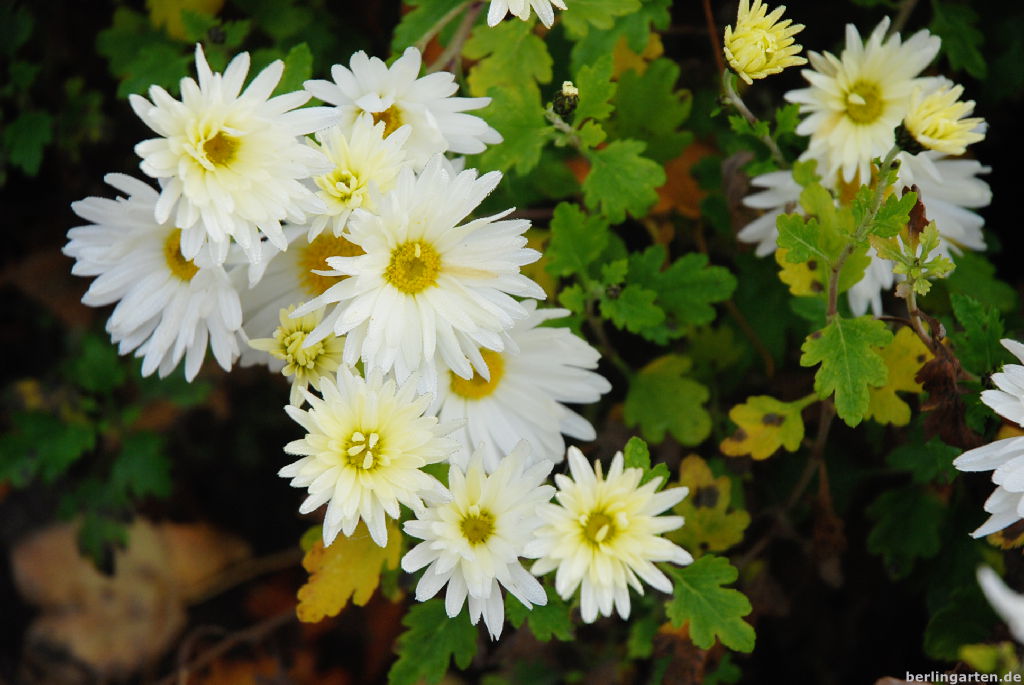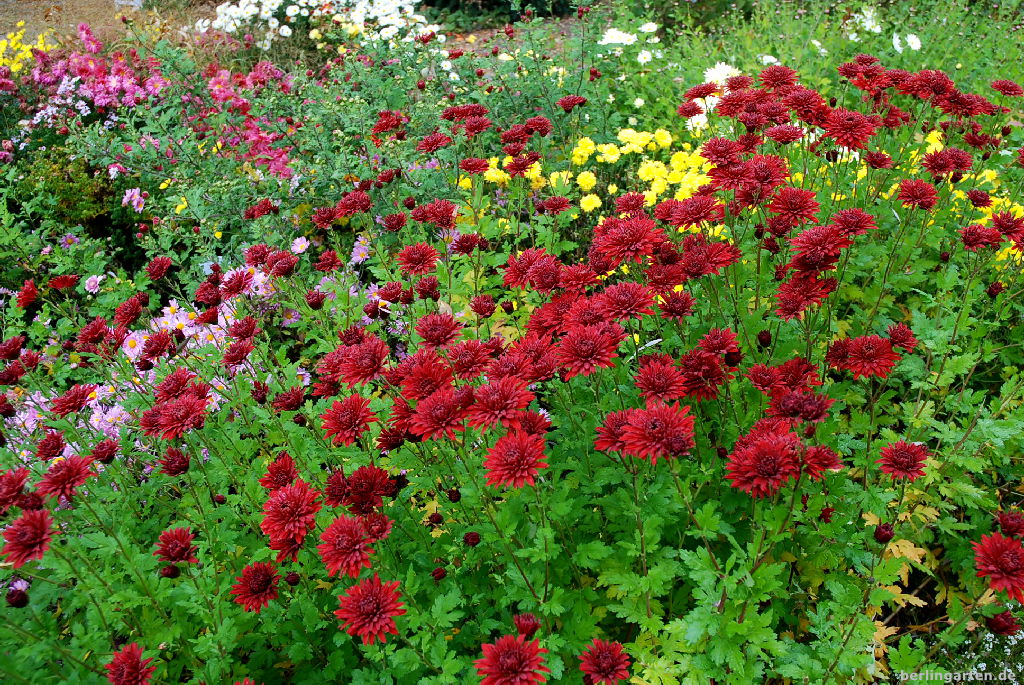 Empfehlen möchte ich die klassischen Gartenchrysanthemen. Mit der jetzt in den Gartencentern angebotenen blühenden Ware habe ich in Sachen Winterhärte keine nachhaltig guten Erfahrungen gemacht – auch nicht mit den als besonders frostfest gepriesenen.