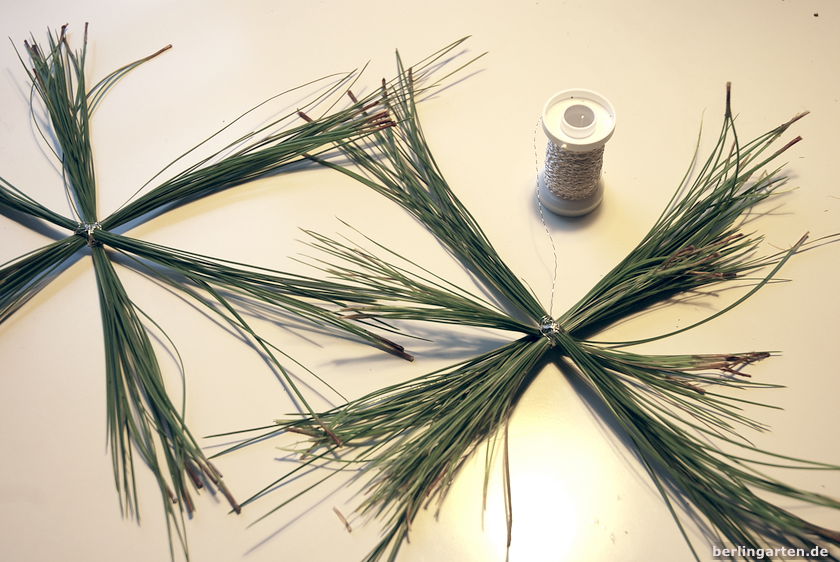 Wenn es mal wieder zack-zack gehen soll: Aus Kiefern-Nadeln – oder für die XXL-Version aus denen von Pinien – kannst du ganz schnell Weihnachtssterne binden.