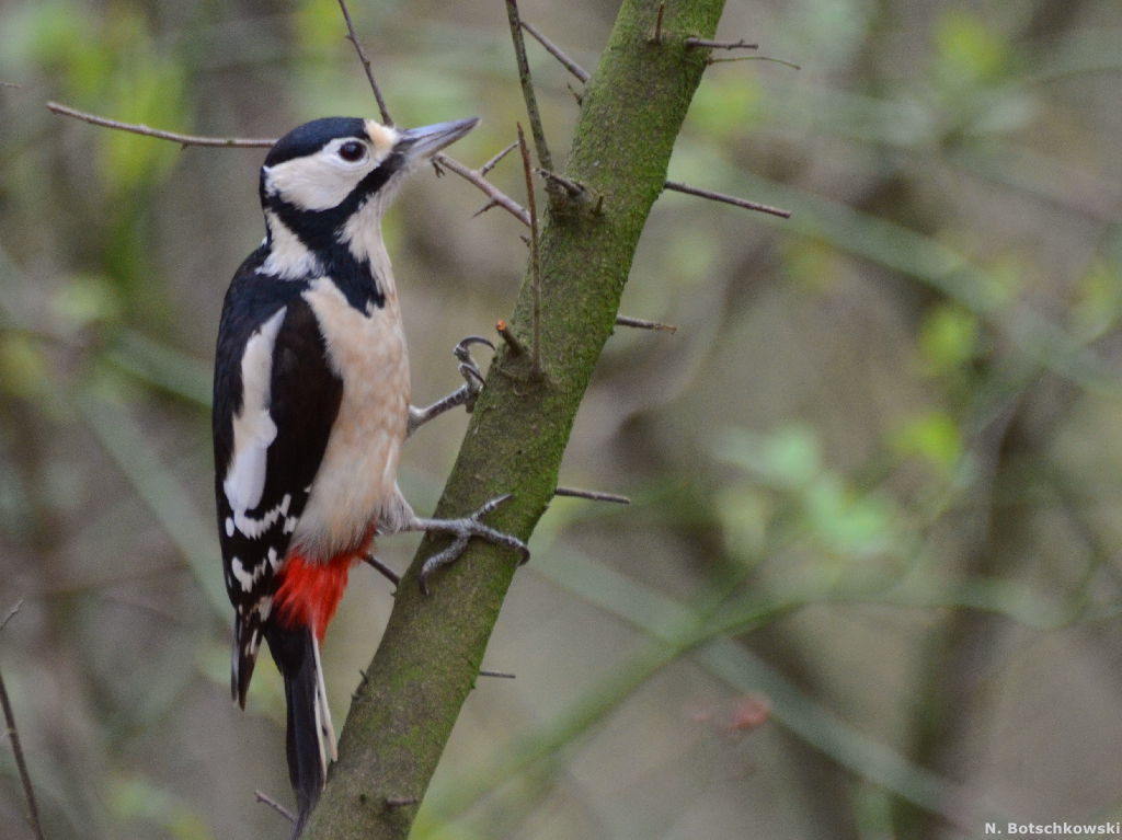 - Der Buntspecht nistet zwar nicht bei uns im Garten, aber er schaut gern mal nach Futter.