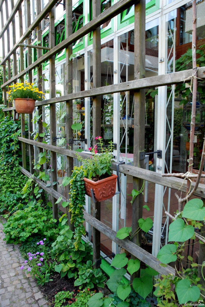 - Jeder Platz wird genutzt, ein Birnbaum wächst als Spalier