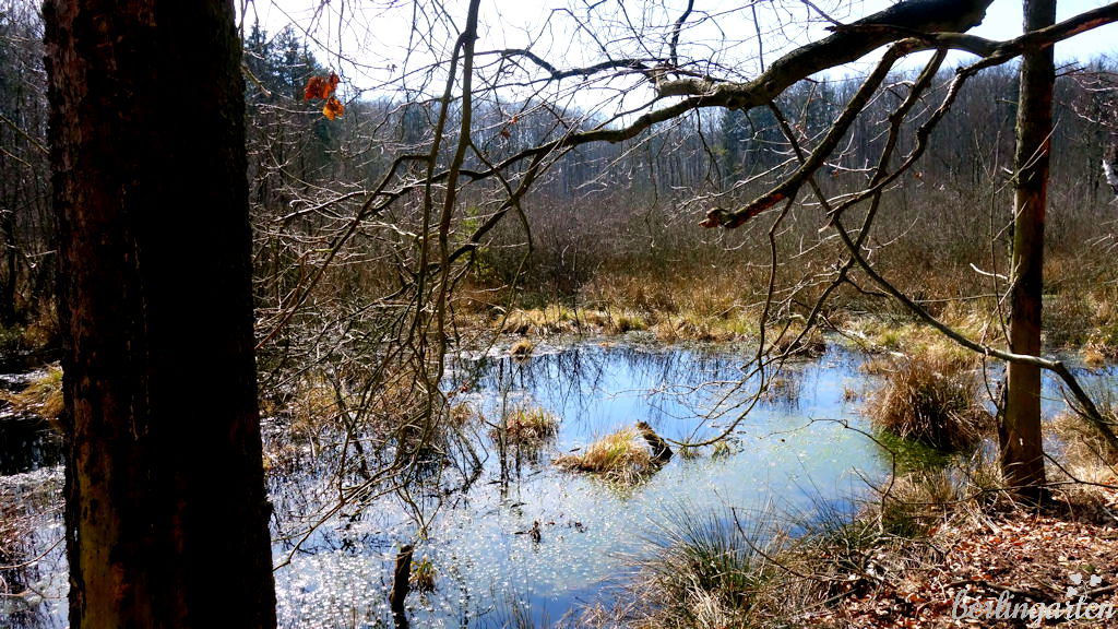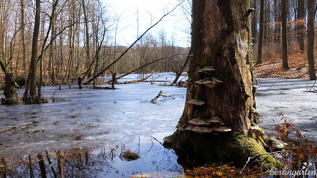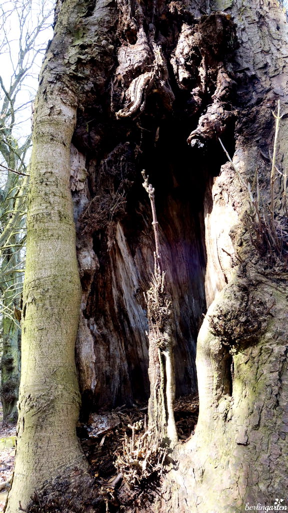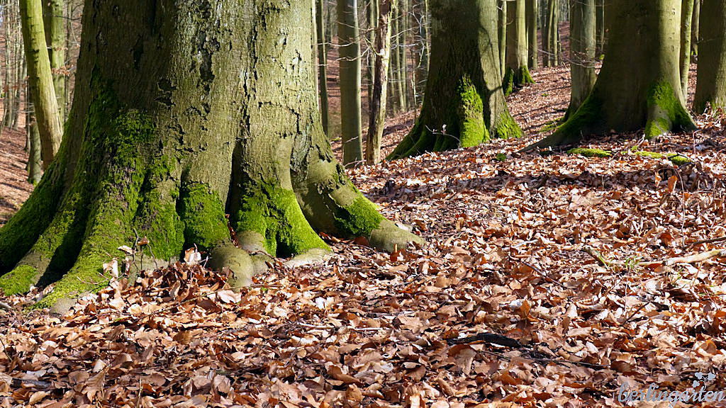 Es ging tüchtig auf und ab auf unserem Weg durch die Endmoränenlandschaft. Der Wald ist geprägt durch hohe Hügel und tiefe Senken, durch Erlensümpfe und Kesselmoore. Mit Leichtwanderschuhen wären wir deutlich besser ausgerüstet gewesen als mit unseren Winterstiefeln. Froh waren wir, dass wir mittels Smartphone auf Landkarten zurückgreifen konnten. Man läuft, ohne einem weiteren Menschen zu begegnen, querfeldein, nur grob orientiert. Wege gibt es wenige bzw. die Natur hat sie sich längst einverleibt. Inzwischen weiß ich aber, dass es eine App gibt, mit der man sich durch alle alten Buchenwälder Deutschlands navigieren kann. So eine digital geführte Tour würde es der Generation Smartphone sicher deutlich erleichtern, mit Mama und Papa im Wald zu sein. Denn auch das kann äußerst chillend wirken – man muss sich nur drauf einlassen.