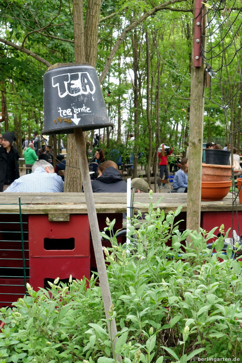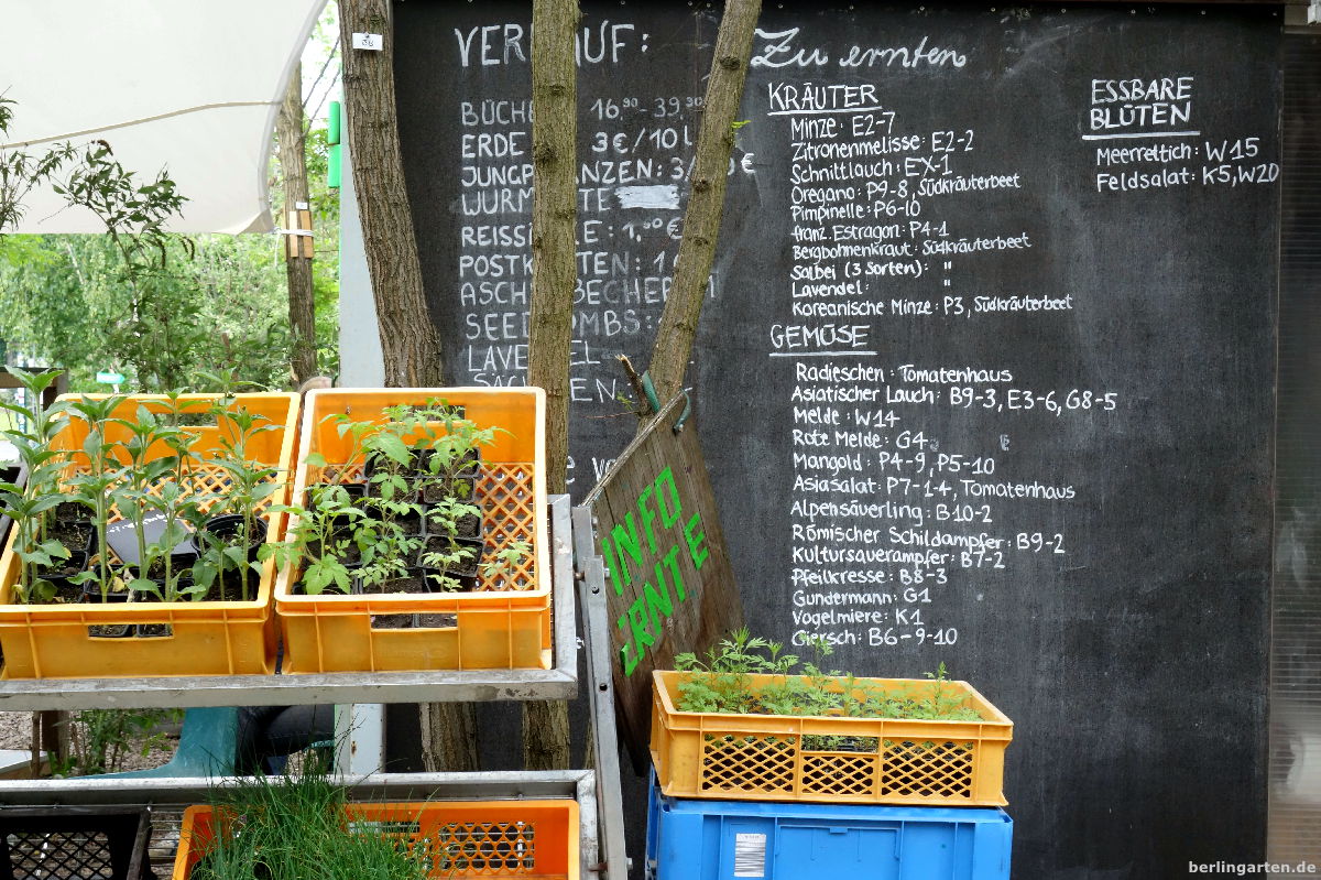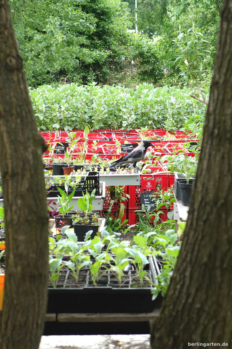 Bloggerkollegin Silvia von Gartenfräulein hatte sich einen überaus passenden Ort für ihre Buchvorstellung ausgesucht: den Prinzessinnengarten in Berlin-Kreuzberg. Wenn es um urbanes Gärtnern geht, ist das Areal am direkt vom Autoverkehr umtosten Moritzplatz das bekannteste in Deutschland. Die Fläche lag jahrzehntelang brach und wurde von mehr als hundert Freiwilligen 2009 vom Müll befreit und von tausenden Helfern in eine für alle offene soziale und ökologische urbane Landwirtschaft verwandelt. Heute werden gemeinschaftlich über 500 verschiedene Gemüse- und Kräutersorten angebaut – großartig für einen Bezirk mit wenig Grün. Nachhaltigkeit spielt eine große Rolle durch Kompostwirtschaft, Saatgutgewinnung, das Verarbeiten und Konservieren des Gemüses sowie die Imkerei. Das Angebot ist offen für alle. Ich verfolge den Prinzessinnengarten seit meiner aktiven Zeit des Kampfes um die Grünflächen in Berlin sehr genau. Und freue mich, dass im Gegensatz zu unserer Schrebergartenkolonie das Gelände vor weiterem Immobilienzugriff gerettet werden konnte.