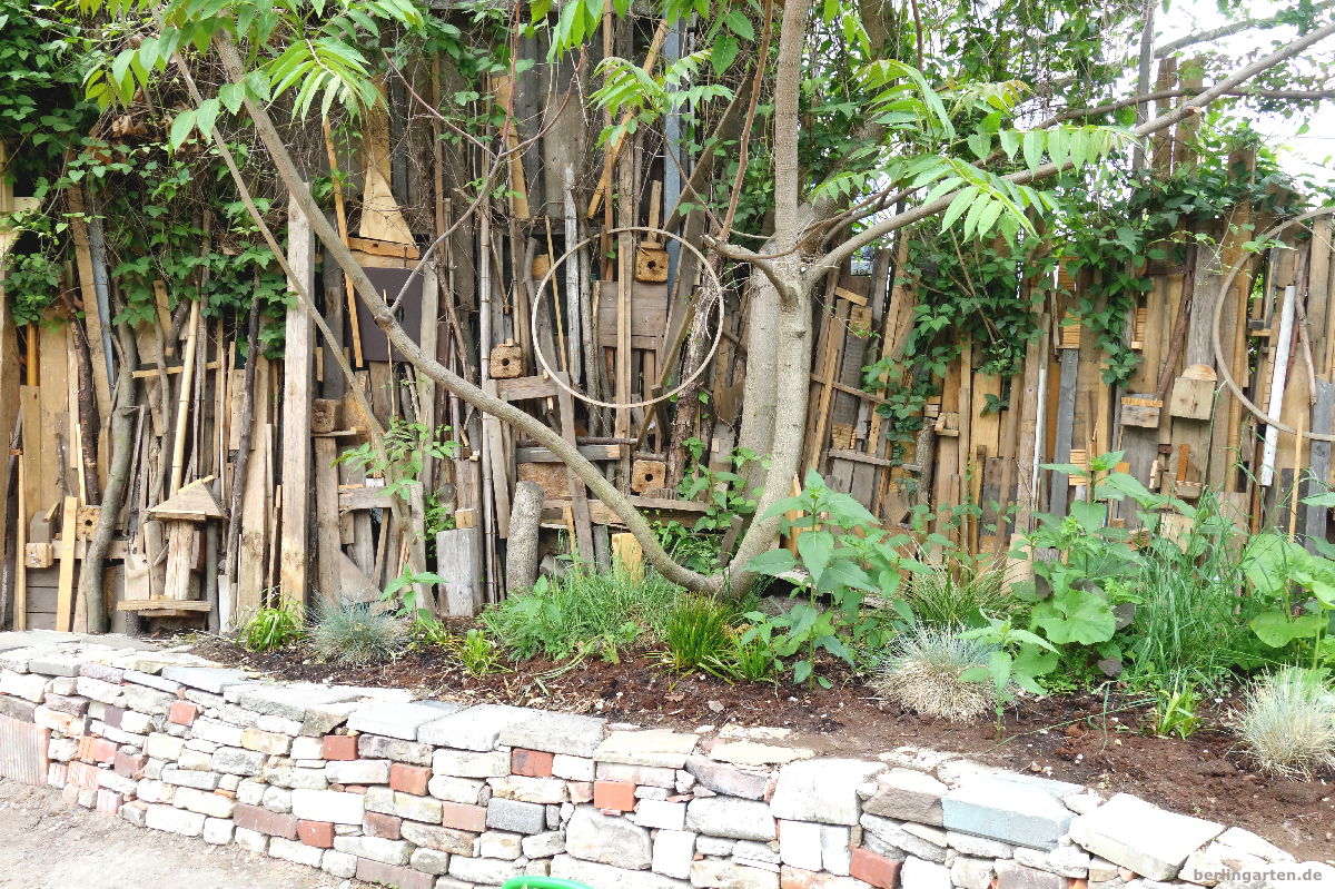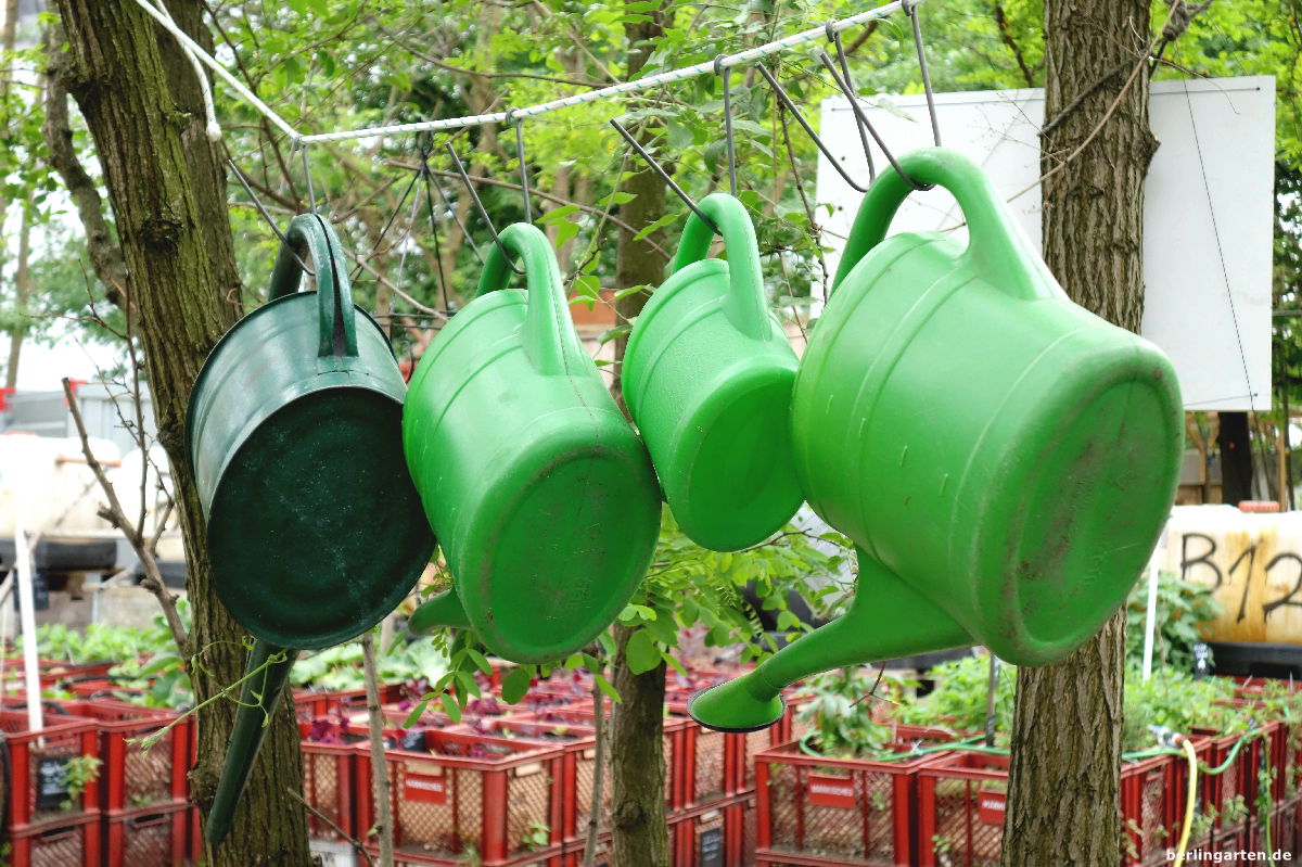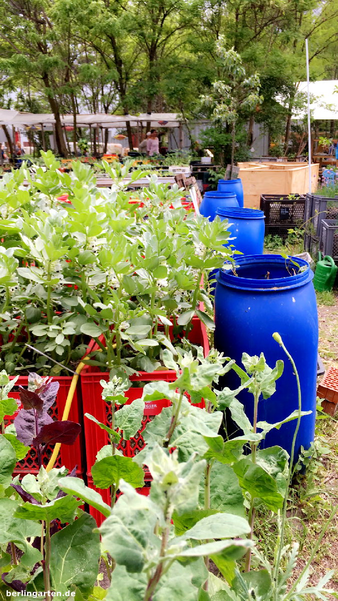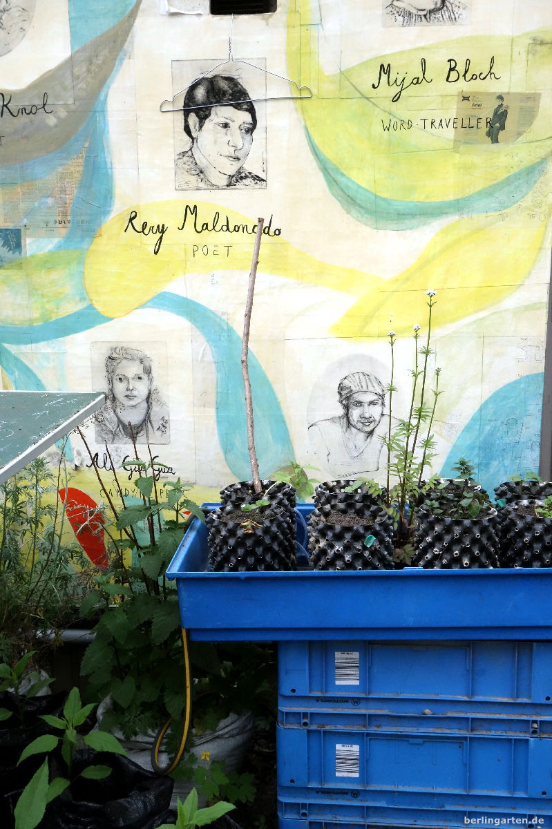 Bloggerkollegin Silvia von Gartenfräulein hatte sich einen überaus passenden Ort für ihre Buchvorstellung ausgesucht: den Prinzessinnengarten in Berlin-Kreuzberg. Wenn es um urbanes Gärtnern geht, ist das Areal am direkt vom Autoverkehr umtosten Moritzplatz das bekannteste in Deutschland. Die Fläche lag jahrzehntelang brach und wurde von mehr als hundert Freiwilligen 2009 vom Müll befreit und von tausenden Helfern in eine für alle offene soziale und ökologische urbane Landwirtschaft verwandelt. Heute werden gemeinschaftlich über 500 verschiedene Gemüse- und Kräutersorten angebaut – großartig für einen Bezirk mit wenig Grün. Nachhaltigkeit spielt eine große Rolle durch Kompostwirtschaft, Saatgutgewinnung, das Verarbeiten und Konservieren des Gemüses sowie die Imkerei. Das Angebot ist offen für alle. Ich verfolge den Prinzessinnengarten seit meiner aktiven Zeit des Kampfes um die Grünflächen in Berlin sehr genau. Und freue mich, dass im Gegensatz zu unserer Schrebergartenkolonie das Gelände vor weiterem Immobilienzugriff gerettet werden konnte.