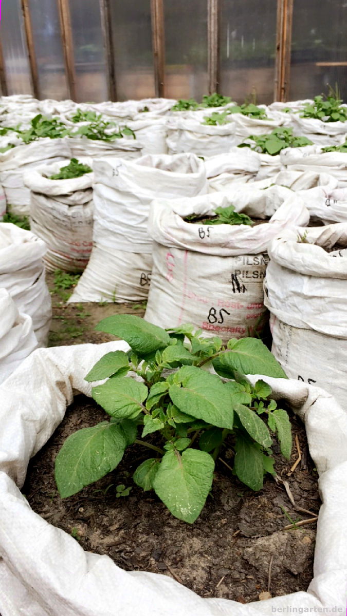 - In der Regel sehr gute Ernte: Kartoffeln in Säcken