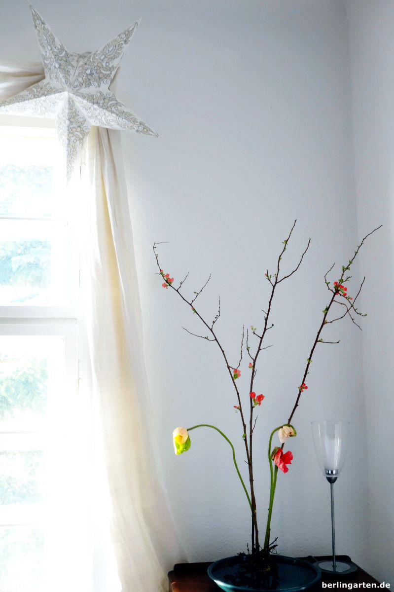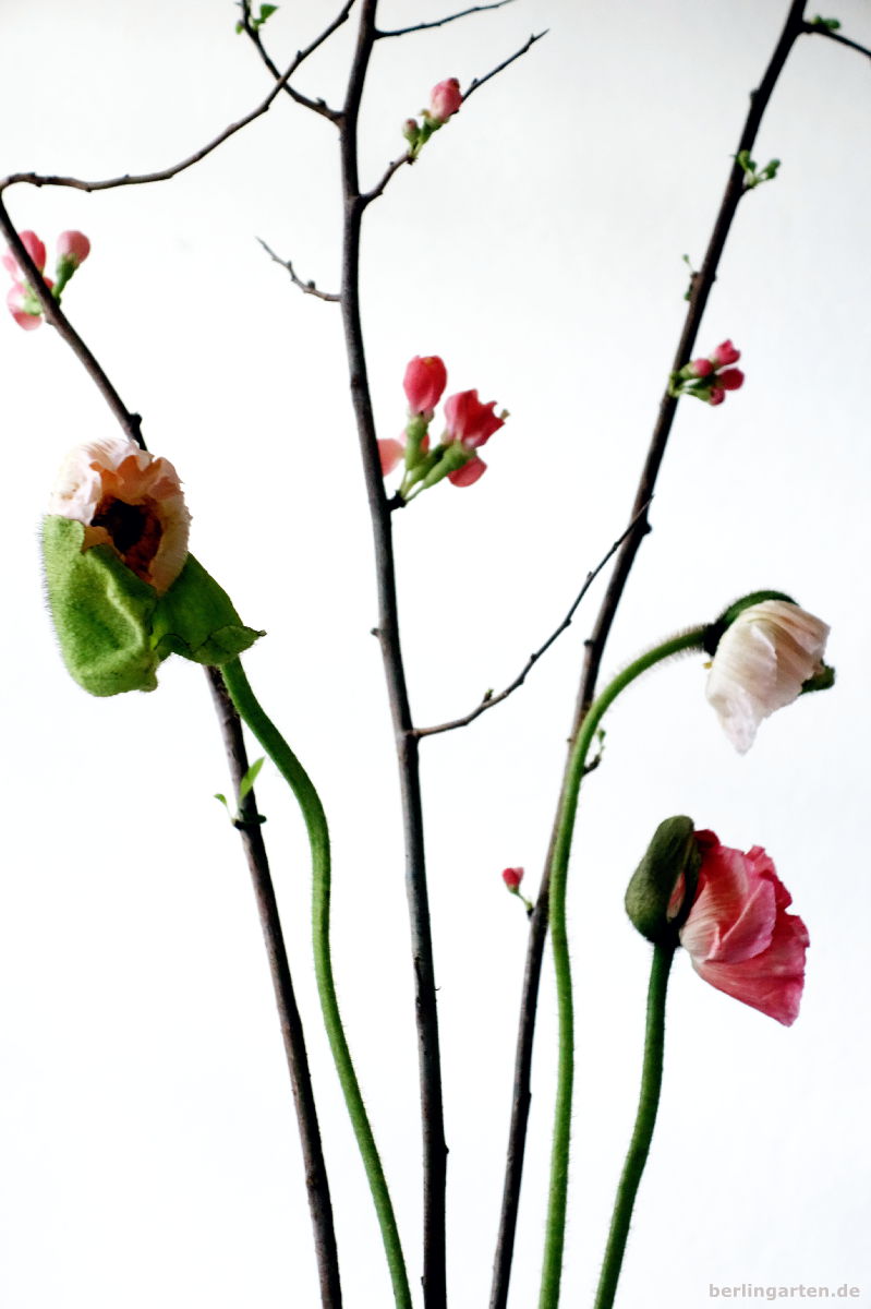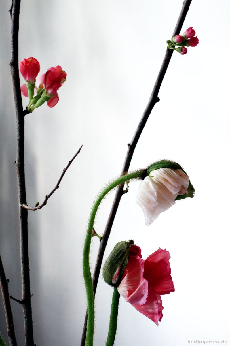 Was für ein wunderbarer Anblick für mein etwas wintermüdes Herz. Diese ungewöhnliche Kombi von Zierquitte und Mohn finde ich zart und ausdrucks-stark.