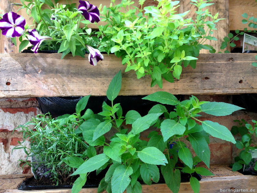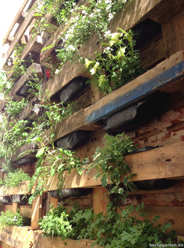 Die gezeigte Umsetzung der Paletten als Pflanzraum ist hübsch, aber wie du schreibst, man wird sich kümmern müssen um die Pflanzen.