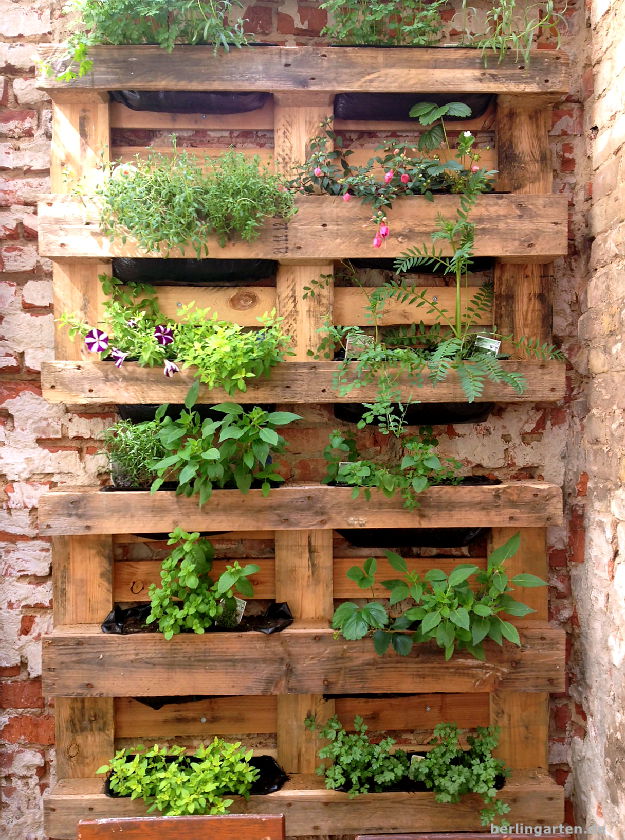 Vertikales Gärtnern: bepflanzte Paletten