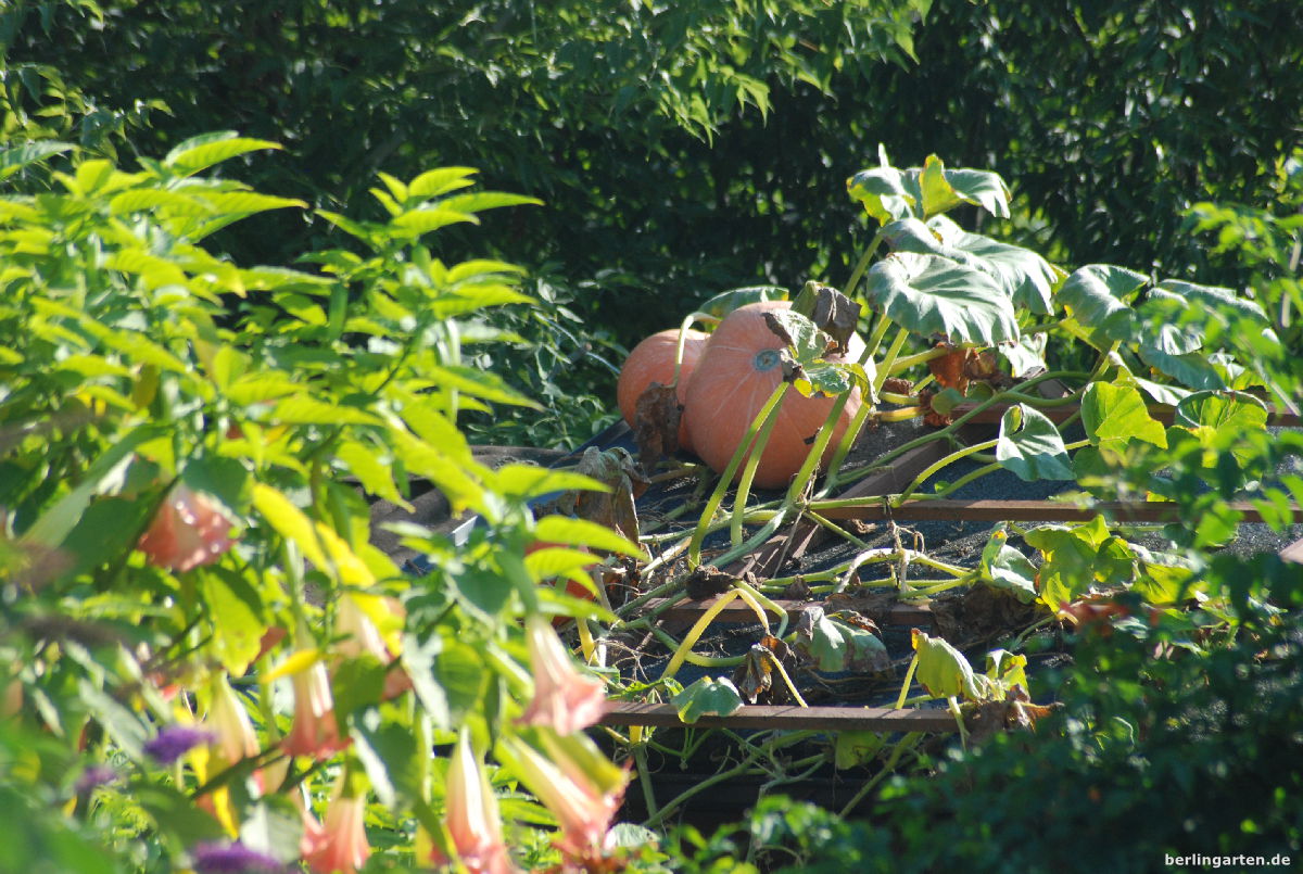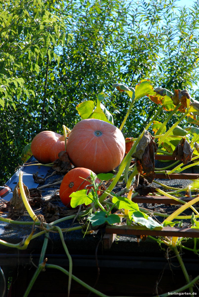 - Auf dem Dach reifen die Kürbisse ungestört