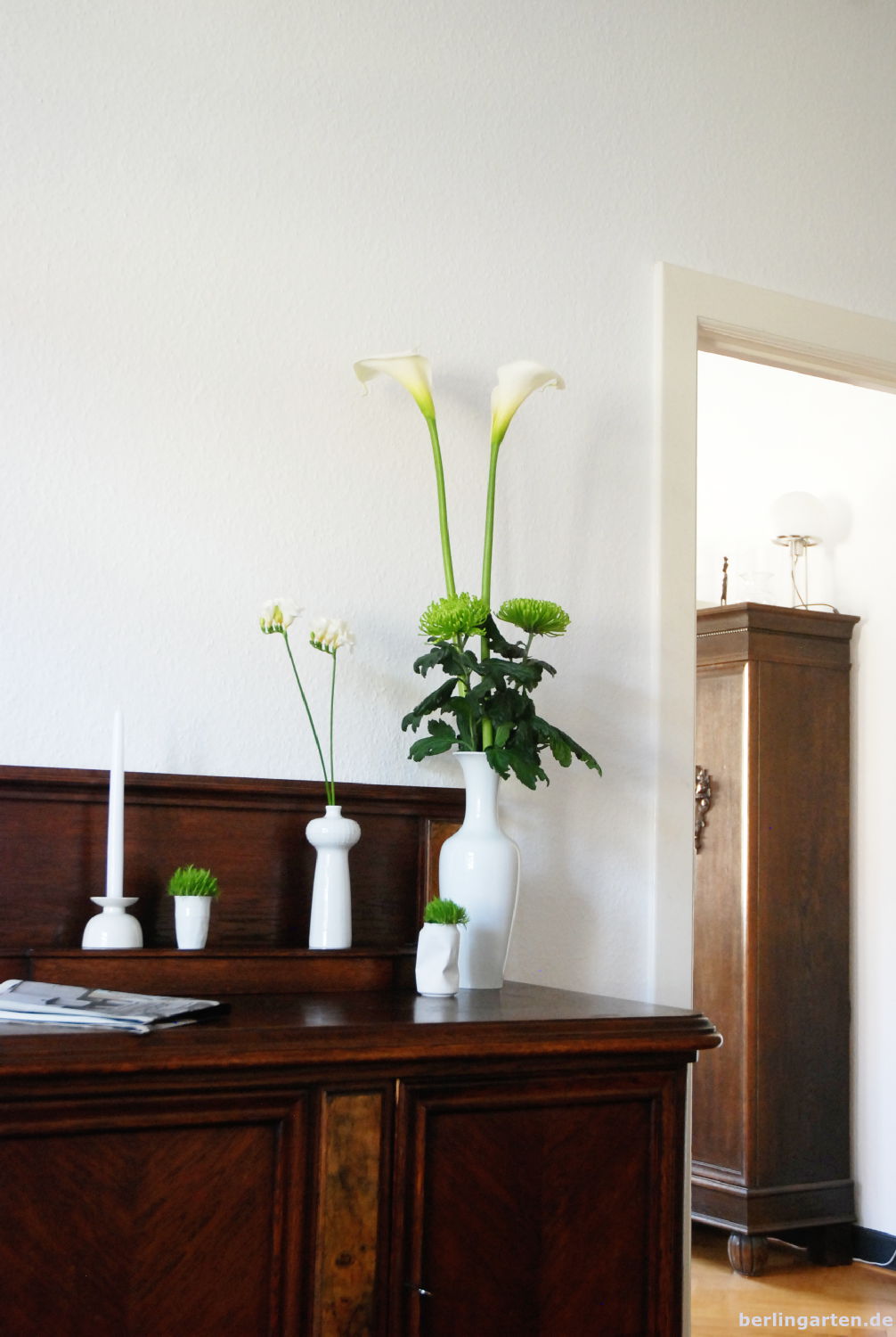 das sieht wundervoll aus…besonders auf diesem dunklen Holz…und mit der weißen Wand so rein und ruhig,