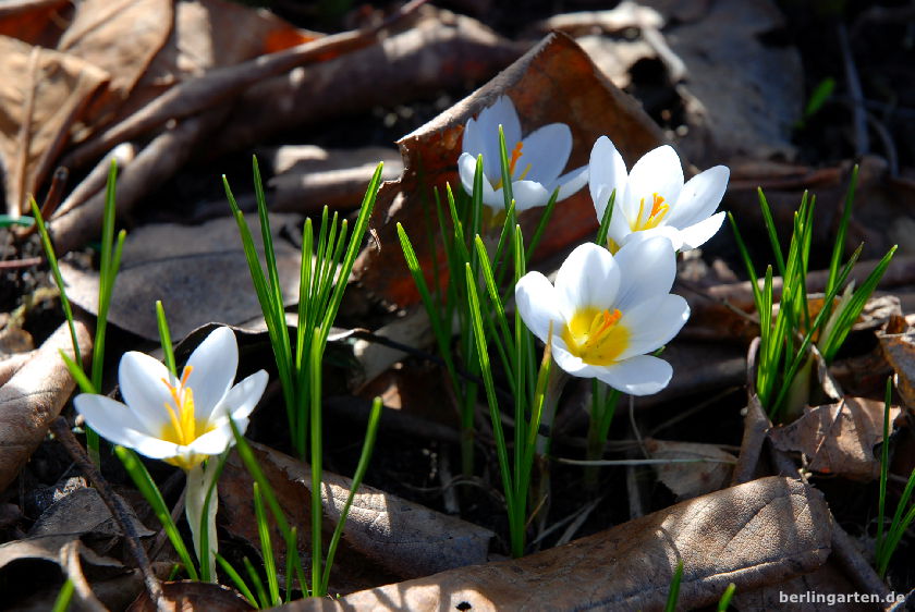 Mein Tipp: Jetzt ist Zeit, die Frühstarter zu düngen. Ich verwende Kompost, den ich an feuchten Tagen – dann sind die Blüten geschlossen und es fällt nichts hinein – ganz vorsichtig um die kleinen Blüten verteile.