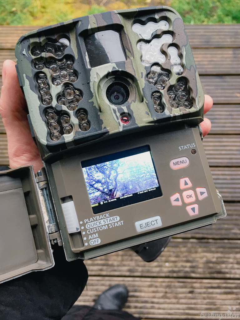 - Die Kamera sollte in Kniehöhe angebracht sein, um umherlaufende Tiere aufnehmen zu können