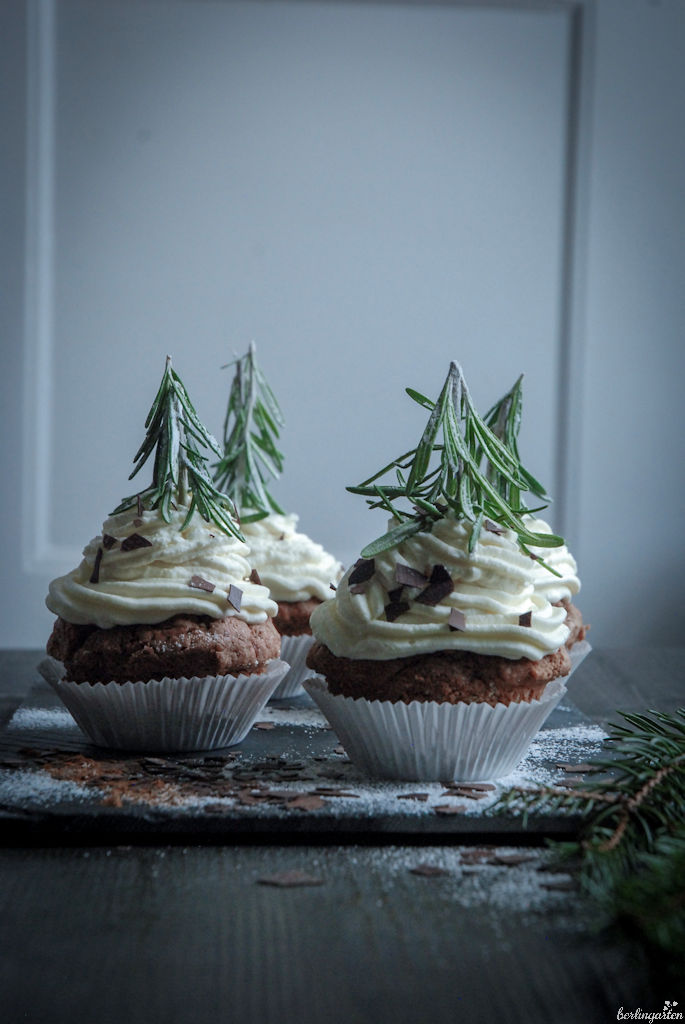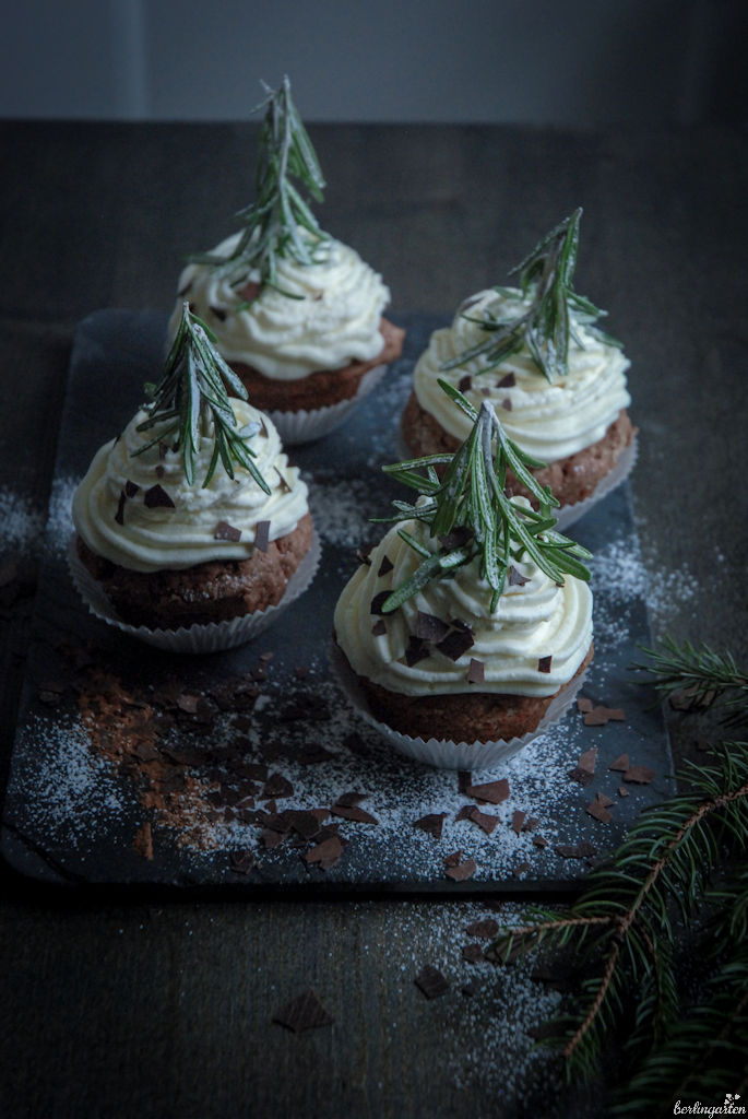 Die Cupcakes sehen toll aus – die schmecken sicher superlecker… Die Idee mit den Rosmarintannen ist super…
