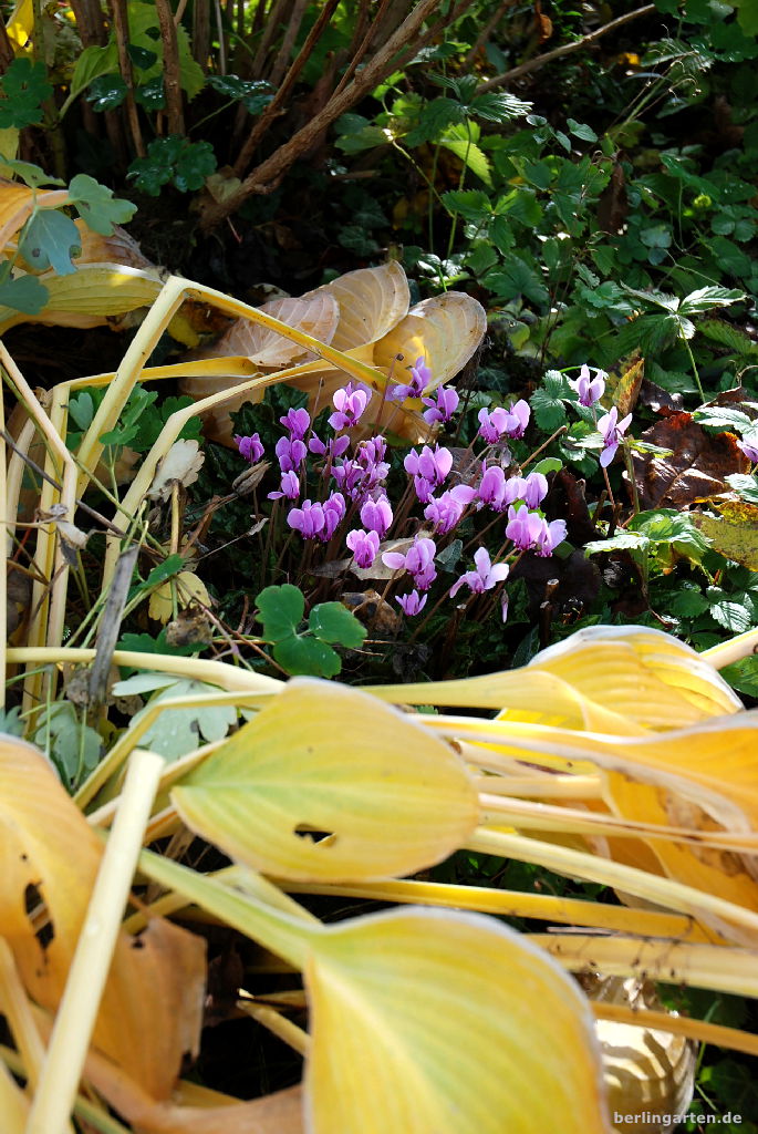 - Die Funkie vergeht langsam, sie kommen: Cyclamen hederifolium rosa