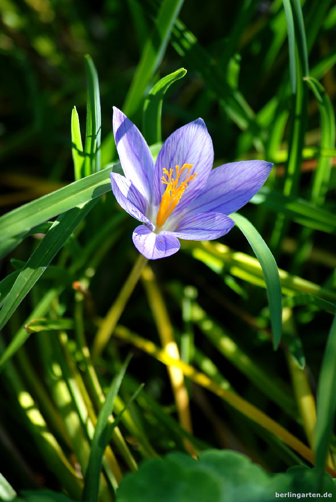 Die Krokusse sehen ganz ähnlich aus, haben aber nicht sechs, sondern nur drei Staubgefäße, daran kannst du sie von den Colchicum unterscheiden. Sicher kennst du Safranfäden in der Küche, das sind nichts anderes als die getrockneten Staubfäden des im Herbst blühenden Safrankrokusses Crocus sativus. Dieses schöne Gewächs Nordafrikas mochte unser Gartenklima allerdings nicht so gern und verschwand nach einer Saison sang- und klanglos. Seine nicht-gewürzigen Brüder passen besser in unsere Breiten und sind unkompliziert.